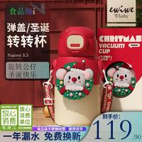 EWIWE轉(zhuǎn)轉(zhuǎn)杯圣誕快樂送禮禮盒保溫杯兒童水杯不銹鋼材質(zhì)彈蓋背帶杯 紅色/考拉/500ML