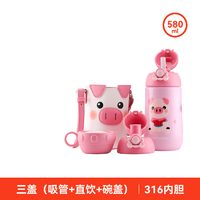 杯具熊兒童保溫杯316銹鋼幼兒園小學(xué)生戶外便攜一杯三蓋大容量水杯 童趣搖搖保溫杯-小豬 580ml